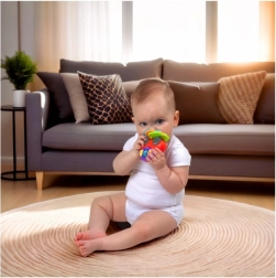 Trzy miękkie gryzaki o różnych fakturach zapewniają ulgę podczas ząbkowania, a kompaktowy kształt kluczyków jest idealny dla małych rączek. Zabawka naturalnie wspiera małą motorykę, koordynację ręka–oko i pierwsze umiejętności chwytu.