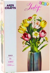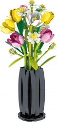 Ten kreatywny zestaw pozwala zbudować barwny bukiet tulipanów i stokrotek uzupełniony nowoczesnym wazonem z klocków. Po złożeniu dekoracja ma około 36,6 cm wysokości i świetnie pasuje do nowoczesnych wnętrz – od salonu po biurko w pracy.