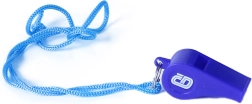 Wytrzymały plastikowy gwizdek na sznurku dla łatwego i bezpiecznego użytkowania – idealny do sygnalizacji odjazdu pociągu.