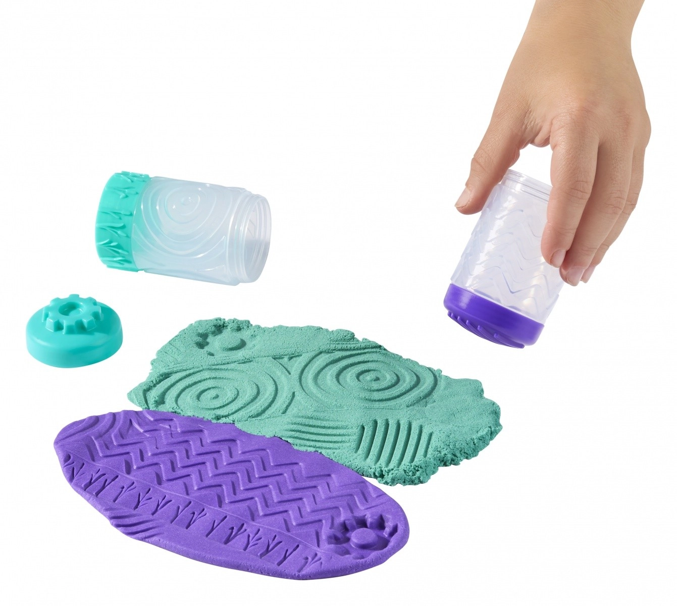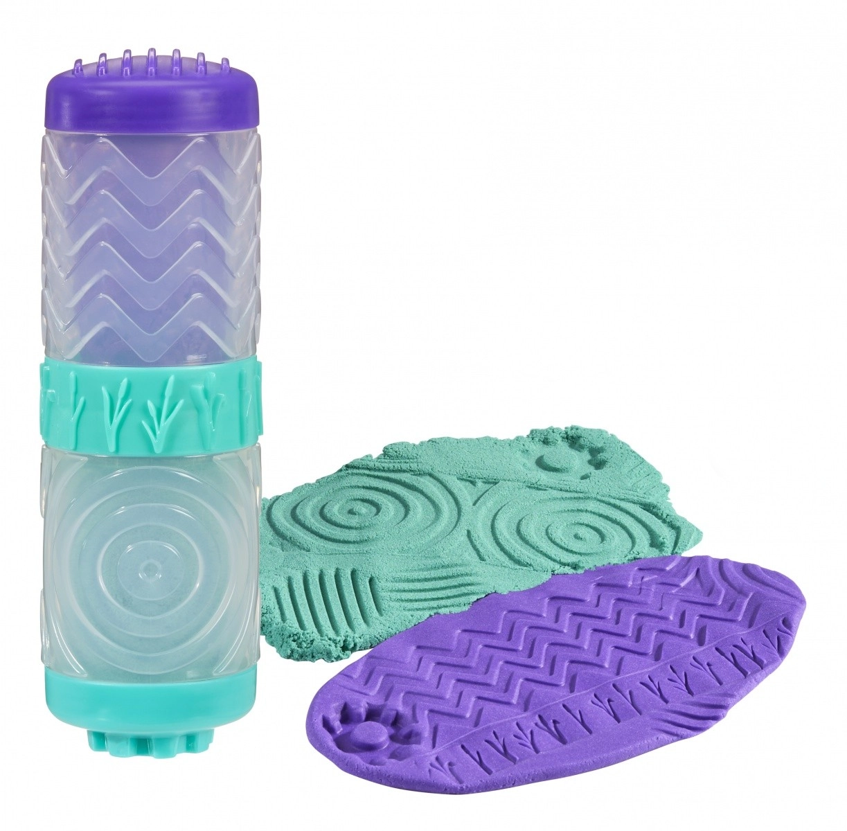 Baw się różnymi konsystencjami – gładką, plastyczną masą i strukturalnym piaskiem – lub wymieszaj je, by stworzyć zupełnie nową fakturę. Dzięki zrównoważonemu opakowaniu każdy element jest jednocześnie częścią zabawy: pokrywki stemplują, łącznik wałkuje, a przezroczyste tuby bezpiecznie przechowują zawartość.