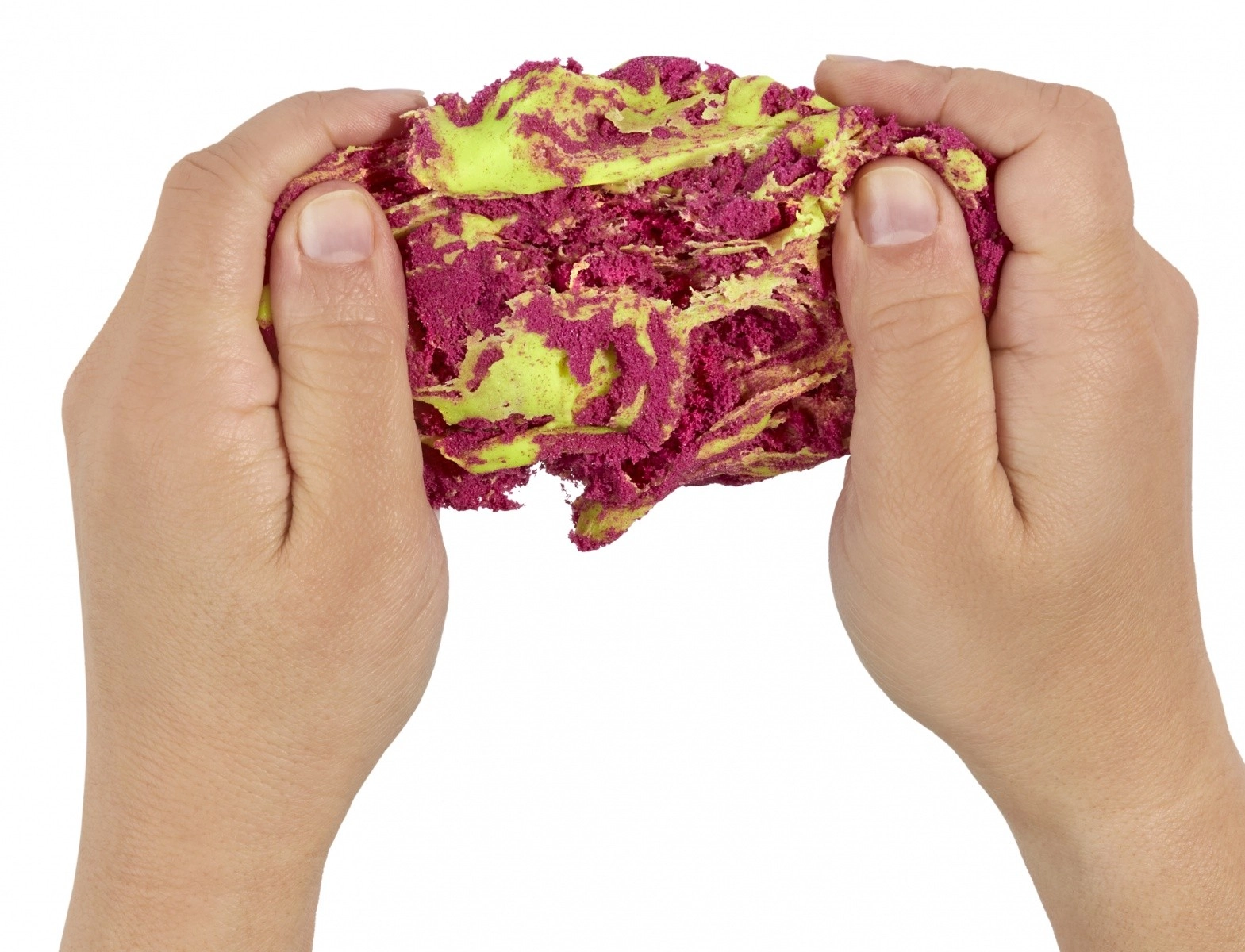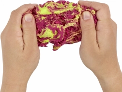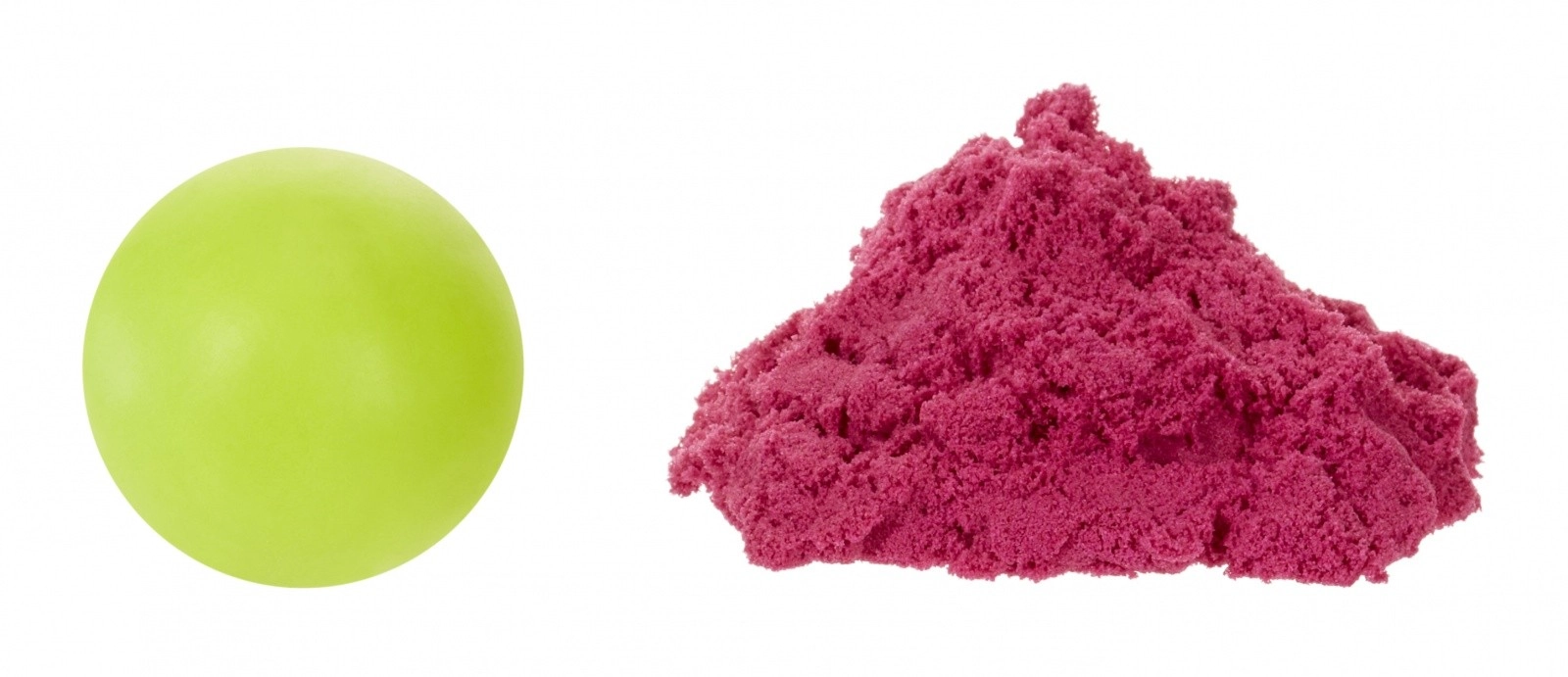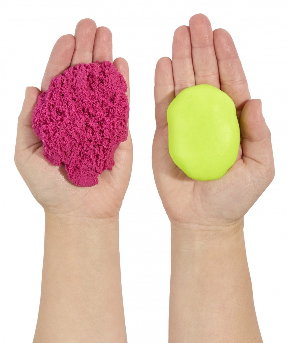 Ten sprytny zestaw kreatywny oferuje dwie różne tekstury dla maksymalnej zabawy – delikatną, gładką masę oraz strukturalny, kształtowalny piasek. Dzięki specjalnemu składowi masa nie wysycha, więc dzieci mogą bawić się wielokrotnie. Limonkowy i różowy kolor zachęcają do mieszania kształtów, wzorów i pomysłowego modelowania.