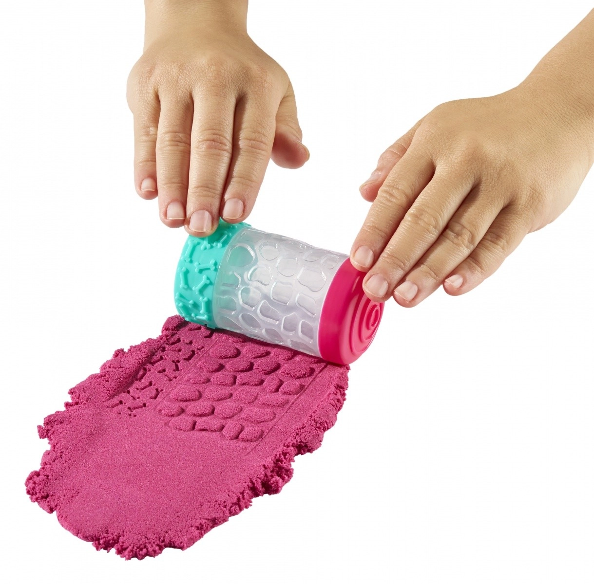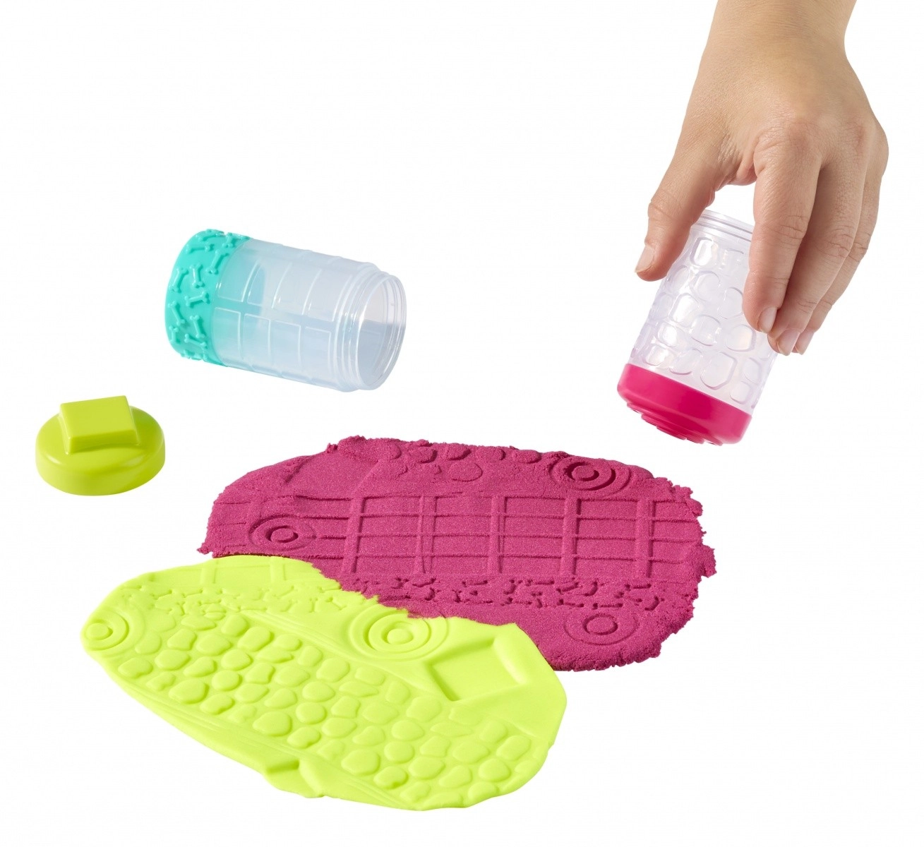 • Dwie tekstury – gładka masa i kształtowalny piasek dla urozmaiconej zabawy.