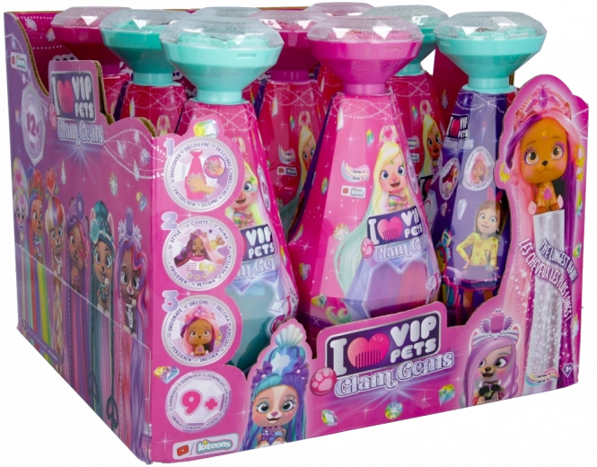 Zestaw VIP PETS Glam Gems S5 został stworzony dla wszystkich, którzy kochają blask, kolory i zabawne fryzury. Każde tematyczne opakowanie skrywa uroczą figurkę zwierzątka z długimi włoskami oraz wybór lśniących akcesoriów, które zamienią każdą zabawę w kreatywny salon fryzjerski.