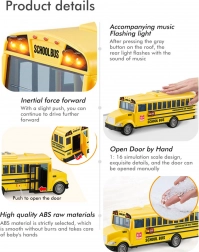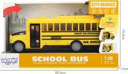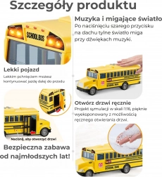 Interaktywny szkolny autobus WOOPIE w skali 1:20 ucieszy małych fanów pojazdów i komunikacji miejskiej. Realistyczne detale, przednie światła i odgłosy jazdy wciągają dzieci do zabawy, a otwierane drzwi sprzyjają kreatywnym scenkom i odgrywaniu ról. Dzięki napędowi ciernemu wystarczy autobus lekko popchnąć, a sam przejedzie kilka metrów.