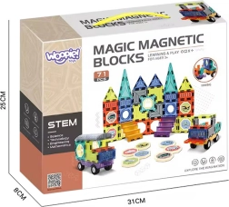 Odkryj świat kreatywności z magnetycznymi klockami 3D marki WOOPIE. Dzięki 71 elementom dzieci zbudują fantastyczne zamki, pojazdy oraz bryły przestrzenne. Silne magnesy, przezroczyste kolorowe elementy i naklejki z motywami środków transportu zapewniają długie godziny zabawy i nauki przez działanie. Zestaw doskonale rozwija małą motorykę, logiczne myślenie i wyobraźnię przestrzenną.