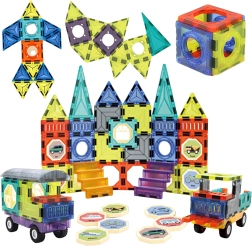 Ten kreatywny zestaw magnetycznych klocków jest idealny dla dzieci od 3 lat. Dzięki silnym magnesom powstają stabilne konstrukcje – od prostych modeli płaskich po dopracowane budowle 3D. Przezroczyste kolorowe elementy zachęcają do poznawania kształtów i barw oraz wspierają naukę poprzez zabawę.