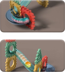 Ten edukacyjny zestaw łączy zabawę z nauką. Dzięki modułowym elementom można łatwo tworzyć stabilne konstrukcje i eksperymentować z prawami fizyki, takimi jak grawitacja czy prędkość. Przezroczyste części toru pozwalają śledzić ruch kulek i zachęcają dzieci do dalszego poznawania.