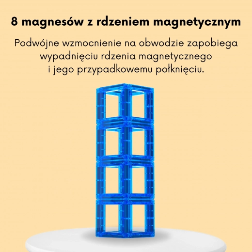 - Mocne magnesy – łatwe łączenie i rozłączanie, stabilne konstrukcje.