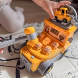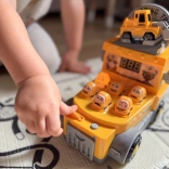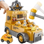 Ta interaktywna żółta budowlana ciężarówka zapewni godziny aktywnej zabawy. Wystarczy wrzucić „monetę”, chwycić miękki młoteczek i trafiać wysuwające się figurki/„autka”, aby zdobyć jak najwyższe punkty na wyświetlaczu. Gra rozwija małą motorykę, koordynację ręka–oko, spostrzegawczość i szybkość reakcji.