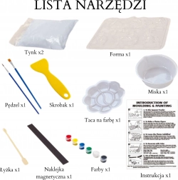 - Kompletne wyposażenie: formy, gips, farby, pędzle i akcesoria, włącznie z instrukcją.