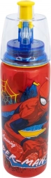 Praktyczna dziecięca butelka na wodę z motywem SPIDERMAN łączy ustnik do wygodnego picia oraz przycisk do orzeźwiającego rozpylania. Idealna do szkoły, na wycieczki i sport, o pojemności 575 ml i składzie bez BPA.
