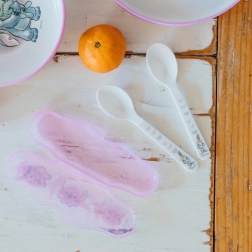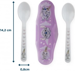 Praktyczny zestaw dwóch dziecięcych łyżeczek z etui z motywem Lilo i Stitch jest idealny w podróży i do przedszkola. Ergonomiczny kształt świetnie dopasowuje się do małych rączek, podróżne etui utrzymuje łyżeczki w czystości i higienie, a materiał jest bez BPA. Spełnia normę EN 14372.
