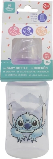 Praktyczna antykolkowa butelka z motywem Lilo i Stitch do wygodnego karmienia noworodków. Oferuje pojemność 240 ml, silikonowy smoczek dla naturalnego ssania oraz zintegrowany system antykolkowy, który zmniejsza ryzyko dyskomfortu. Jest bez BPA i spełnia normę EN 14350.