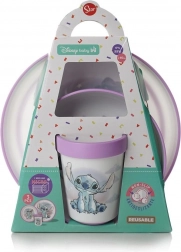 Uroczy dziecięcy zestaw obiadowy 3w1 z motywem LILO & STITCH umili każdy posiłek. Zawiera talerzyk, miseczkę i kubek, jest bez BPA, a elementy są odpowiednie do kuchenki mikrofalowej oraz zmywarki (patrz specyfikacja).