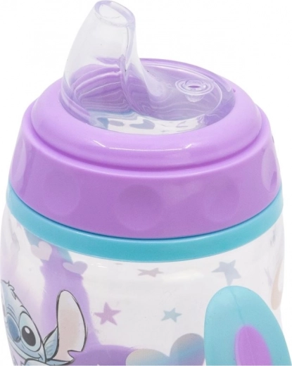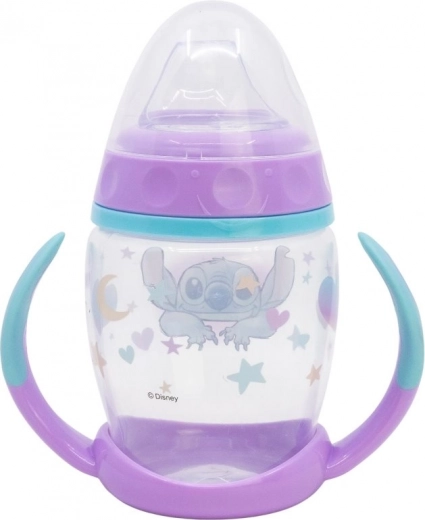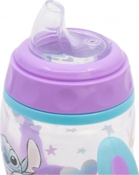 Kubek z uszkami i silikonowym ustnikiem STITCH 270 ml pomaga dzieciom wygodnie i bezpiecznie przechodzić z butelki na kubek. Miękki ustnik jest delikatny dla wrażliwych dziąseł i ząbków, a antypoślizgowe uchwyty zapewniają pewny chwyt nawet małym rączkom.