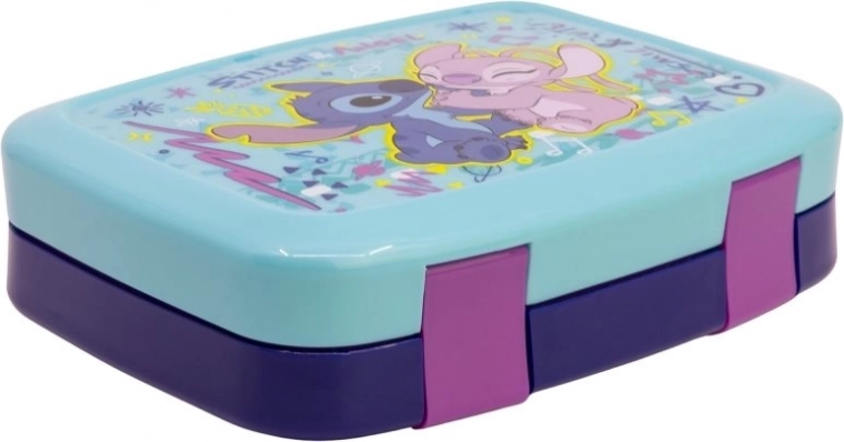Utrzymuj przekąski przejrzyście oddzielone i świeże dzięki sprytnemu układowi – 3 przegródki na górze na owoce, orzechy lub ciasteczka oraz 1 przestronna przegródka na dole (tacka) na kanapkę lub większą porcję. Uroczy motyw Angel i Stitch ucieszy wszystkich małych i dużych fanów.