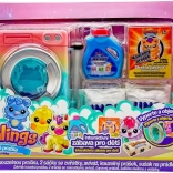 Zmieniaj pranie w magiczny rytuał! Mini pralka Washlings z otwieranymi drzwiczkami, obracającym się bębnem i wężykiem do spuszczania wody zapewnia dzieciom realistyczną, a przy tym bezpieczną zabawę w dom. W opakowaniu znajdziesz „brudną” saszetkę – po praniu ujawnia się w niej niespodziankowe zwierzątko oraz miękki ręczniczek, który możesz powiesić na mini suszarce.