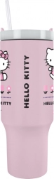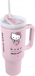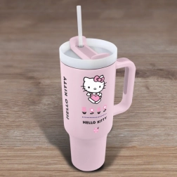 Stylowy podróżny kubek z motywem Hello Kitty do wygodnego picia w podróży i w domu. Dzięki stali nierdzewnej napoje pozostają długo gorące lub chłodne, ma ergonomiczny design, praktyczne wieczko ze słomką oraz wygodny uchwyt dla łatwego użytkowania. Idealny do auta, do pracy i na wycieczki. Pojemność 1200 ml.