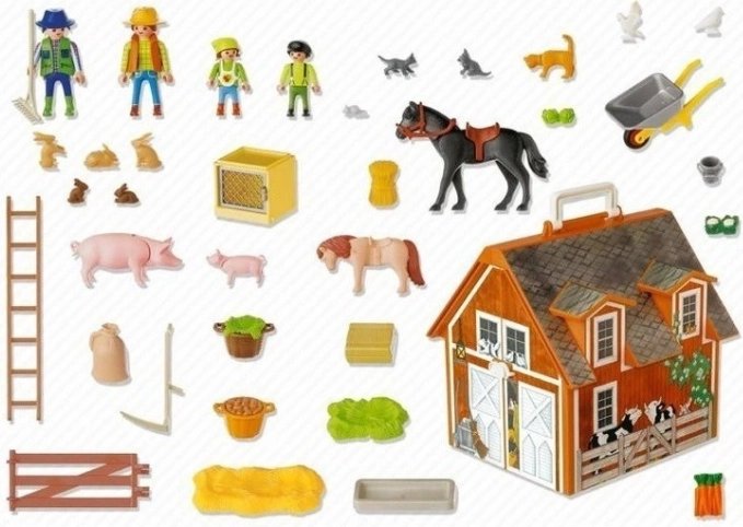 Zestaw Playmobil Przenośna farma zamieni każde pomieszczenie w magiczny świat wsi. Otwierana walizeczka skrywa w pełni wyposażone gospodarstwo oraz mnóstwo zwierząt – od prosiątek i koni, przez króliki, aż po urocze kocięta. Rodzice z dziećmi opiekują się wszystkimi mieszkańcami farmy i uczą się odpowiedzialności poprzez zabawę.