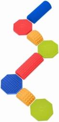 Heksagony, półokręgi i żebrowane belki umożliwiają ułożenie prostych i krzywoliniowych ścieżek, torów z zakrętami oraz torów przeszkód.