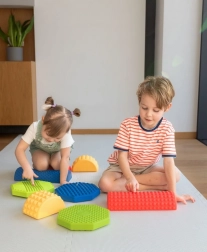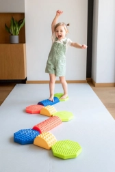 Ułóż dowolną trasę z kolorowych kamieni, bloków i belek i zamień ruch w zabawę. Każdy element ma inną wysokość i reliefową powierzchnię dla pewnego kroku i bezpiecznych ćwiczeń. Świetne do domowej aktywności, przedszkoli, świetlic oraz terapii sensorycznej.