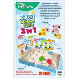 Odkryj zestaw gier, który bawi małych i dużych. Zestaw 3 w 1 łączy ponadczasowe Domino, zręcznościowe Pchełki oraz dynamiczną grę karcianą Kuku. Wesołe ilustracje z animowanego serialu Rodzina TREFLIKÓW wciągną dzieci w świat gier i umilą każdą rodzinną chwilę.