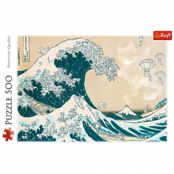Odkryj zabawę dla całej rodziny z puzzlami 500-elementowymi z motywem wielkiej kociej fali. Po ułożeniu powstanie obraz o wymiarach 48 × 34 cm. Wysokiej jakości papier kalandrowany ogranicza odblaski, a intensywne kolory są drukowane ekologicznymi farbami spożywczymi. Odpowiednie dla dzieci od 3 lat.