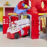 Ta szczegółowo opracowana remiza strażacka z PAW Patrol przenosi dzieci w realistyczną akcję jak w serialu. Czekają światła i dźwięki, spiralny słup z podnośnikiem do szybkiego wyjazdu oraz stacja do „uzupełniania wody” przed misją. Marshall jest gotów ruszyć swoim wozem strażackim i walczyć z płomieniami dzięki strzelaniu wodnymi pociskami.