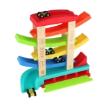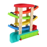Kolorowy kaskadowy tor wyścigowy z wysokiej jakości drewna i plastiku zapewni dzieciom długie godziny zabawy. Wystarczy położyć samochodzik na górnej platformie i obserwować, jak mknie po rampach aż do mety. W zestawie znajdują się 4 wyścigowe samochodziki idealne do małych dziecięcych rąk. Tor ma stabilną konstrukcję, gładkie krawędzie i jest odpowiedni dla dzieci od 18 miesięcy.
