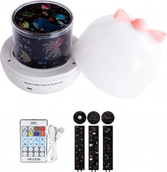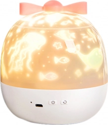 Magiczna lampka nocna z projektorem zamieni dziecięcy pokój w bajkowy świat. Oferuje 6 wymiennych scen, obrót 360°, efekty dźwiękowe, sterowanie pilotem oraz 3 poziomy jasności. Można jej używać jako projektora gwiazd oraz jako delikatnej lampki nocnej z zasilaniem przez USB.