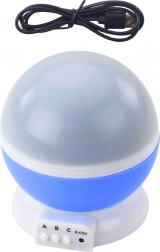 Dzięki 9 trybom świecenia łatwo wybierzesz kolor i efekt – od statycznego blasku po kolorowe, rotujące niebo. Zasilanie zapewniają 3× baterie AA (brak w zestawie) lub kabel USB (w zestawie), więc lampkę możesz używać gdziekolwiek.