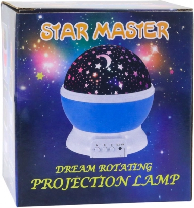 - Lampka nocna – projektor gwiazd, kabel zasilający USB, opakowanie