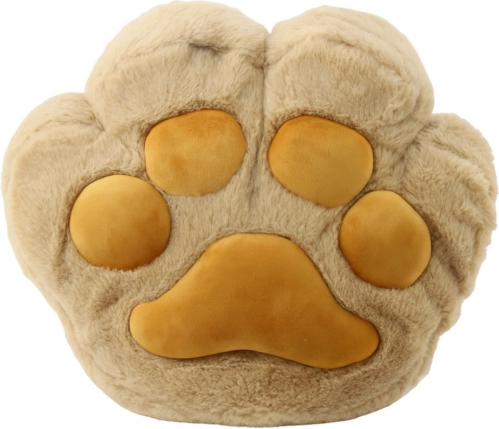 Pluszowa poduszka kocia łapka z kieszenią na ręce i schowanym kocem. Miękka, ciepła i praktyczna do relaksu i dekoracji. Beżowa, 40 cm.