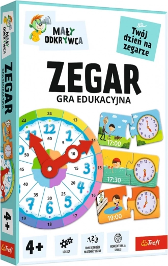 Edukacyjna gra „Zegar” z kolekcji Mały Odkrywca została zaprojektowana tak, aby dzieci łatwo i z radością zrozumiały, jak działają zegary. Dzięki połączeniu zapisu analogowego i cyfrowego szybko opanują czytanie czasu i lepiej zrozumieją plan dnia.