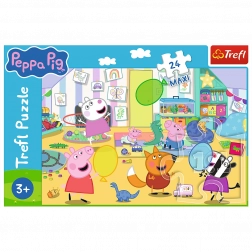 Odkryj radość układania puzzli dla najmłodszych z ulubioną bohaterką Peppa Pig. Ekstra duże elementy ułatwiają chwytanie i wspierają rozwój motoryki małej, cierpliwości oraz postrzegania kształtów i kolorów. Dzięki specjalnemu papierowi kalandrowanemu, który ogranicza odblaski, układanie jest wygodne i mniej męczy oczy.