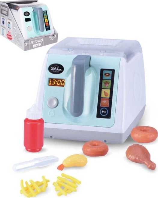 Ta dziecięca frytkownica zapewnia autentyczne wrażenia z gotowania – podczas „smażenia” świeci i brzmi jak prawdziwa frytkownica. Dzięki dołączonym produktom dzieci mogą bawić się w swój własny fast food lub restaurację, rozwijając wyobraźnię i małą motorykę.