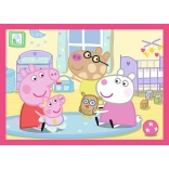 Kolorowy zestaw czterech puzzli z motywami Świnki Peppy (Peppa Pig) ucieszy małych miłośników przygód. Zawiera 4 oddzielne układanki o różnej liczbie elementów (12, 15, 20 i 24), dzięki czemu pasuje do różnych poziomów umiejętności. Po ułożeniu powstają obrazki o wymiarach 285 × 205 mm. Wyprodukowano w Polsce z materiałów ekologicznych, odpowiednie dla dzieci od 3 lat.