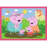 Odkryj magię układania z ulubionymi bohaterami z serialu Świnka Peppa (Peppa Pig). Ten zestaw 4 w 1 zawiera cztery niezależne obrazki o różnej liczbie elementów, co wspiera stopniowy rozwój motoryki, cierpliwości i logicznego myślenia. Każdy ukończony obrazek ma rozmiar 285 × 205 mm, idealny dla małych rączek.