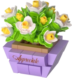 Elementy łatwo się zatrzaskują, więc poradzą sobie z nimi nawet początkujący. Do wyboru jest wiele wzorów – od kaktusa, przez rozkwitłe kwiatuszki, po eleganckie fioletowe kłosy. Każdy model robi wrażenie i tworzy kwiatową kompozycję 3D w pastelowych kolorach.