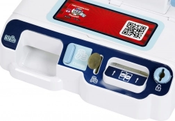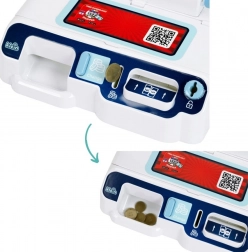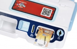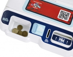 W zestawie są banknoty, monety i karta płatnicza. Dzieci mogą odkładać pieniądze do przegródki, wrzucać monety i „przykładając” kartę finalizować zakup.