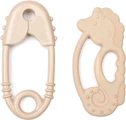 Praktyczny zestaw ułatwiający ząbkowanie: miękki silikonowy gryzak w kształcie konika morskiego oraz klips do przypięcia do ubrania, wózka lub fotelika samochodowego. Wykonany z silikonu spożywczego bez BPA, ftalanów i PVC, delikatny dla dziąseł dziecka i łatwy do umycia ciepłą wodą. Fioletowo‑beżowy design wspiera rozwój zmysłów i małej motoryki.
