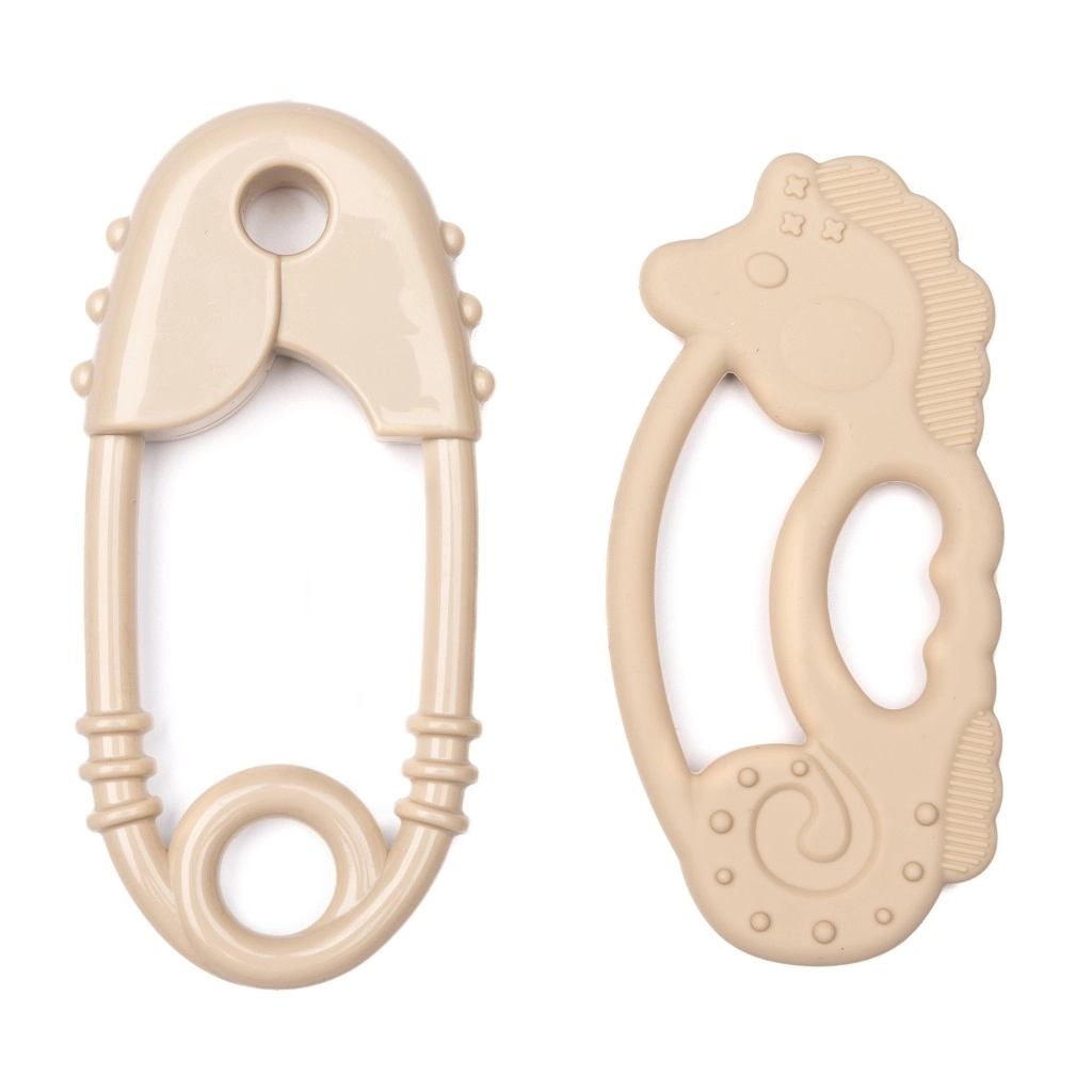 Ten zestaw łączy uroczy silikonowy gryzak w kształcie konika morskiego oraz bezpieczną agrafkę/klips, który utrzymuje gryzak zawsze pod ręką. Miękki silikon spożywczy delikatnie masuje dziąsła i pomaga złagodzić dyskomfort podczas ząbkowania.