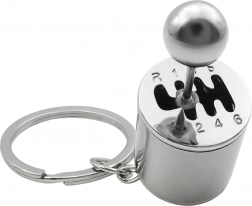 Stylowy metalowy brelok do kluczy w kształcie skrzyni biegów z ruchomą dźwignią zmiany biegów ucieszy każdego kierowcę. Jest wytrzymały, łatwy do przenoszenia i dzięki solidnemu metalowemu kółku łatwo przypniesz go do kluczy, plecaka lub torby. Świetny jako oryginalny prezent i antystresowy gadżet.