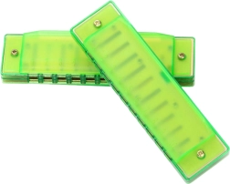 Ta kompaktowa harmonijka diatoniczna została zaprojektowana tak, aby pierwsze kroki w świecie muzyki były zabawne i intuicyjne. Przezroczysty zielony korpus z wytrzymałego plastiku dobrze leży w małej dłoni, łatwo się go czyści i jest bezpieczny dla dzieci. Dzięki 10 otworom pozwala ćwiczyć podstawowe melodie, rytm i koordynację oddechu.