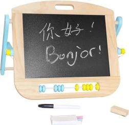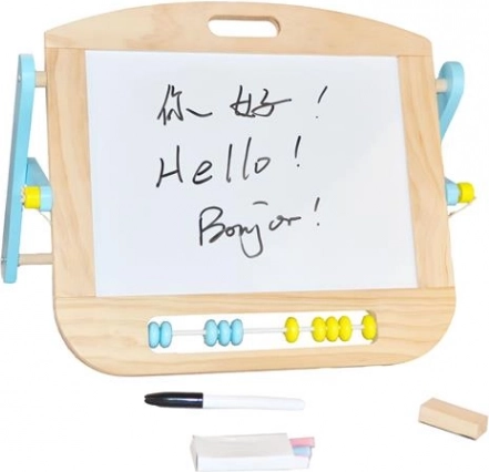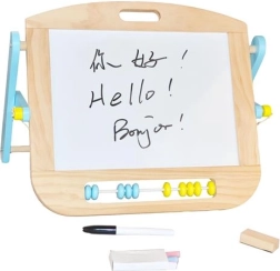 Wielofunkcyjna tablica stołowa to świetna pomoc do pierwszych rysunków, pisania i nauki. Dzięki dwóm powierzchniom dzieci łatwo przełączają się między rysowaniem markerem a kredą, trenują małą motorykę i rozwijają wyobraźnię. Zintegrowane, dwukolorowe liczydło wspiera wczesne umiejętności matematyczne.