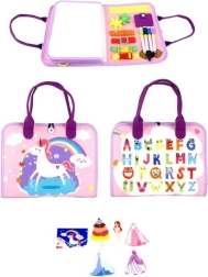 Sensoryczna busy książka jednorożec od 2Kids Toys oferuje dzieciom od 3 lat szeroką gamę aktywności, które rozwijają koordynację ręka–oko oraz wspierają cierpliwość i wyobraźnię. Każda strona kryje inne zadanie, które bawi i jednocześnie uczy – od zapinania klamer i zamków po wiązanie sznurówek.