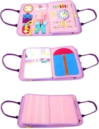 - Różnorodne aktywności: guziki, klamry, zamki błyskawiczne, rzepy, sznurówki i inne