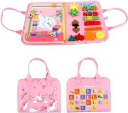 Odkryj magię nauki poprzez zabawę z sensoryczną busy book z motywem jednorożca, która dostarcza dzieciom zabawy i rozwoju motoryki małej. Książka oferuje guziki, klamry, suwaki, rzepy i sznurówki, wspiera logiczne myślenie, koncentrację i percepcję sensoryczną. Jest miękka, lekka i świetnie sprawdzi się jako prezent dla dzieci od 3 lat.