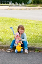 Przezroczyste grzechoczące kółka z koralikami dodają jeździe wesołych efektów dźwiękowych i stymulują zmysły. Pod siedziskiem znajduje się tajna przegródka na drobiazgi, dzięki której każdy spacer staje się jeszcze bardziej pełen przygód. Wysoka jakość wykonania gwarantuje długotrwałą zabawę pełną wyobraźni.