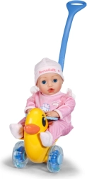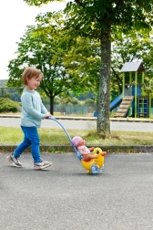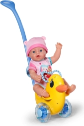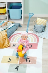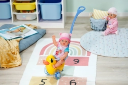 Pchacz Berta to idealny dodatek dla małych opiekunek i opiekunów. Dzięki zdejmowanemu i regulowanemu drążkowi prowadzącemu łatwo dopasowuje się do wzrostu dziecka i zapewnia wygodne prowadzenie podczas jazdy. Regulowane oparcie i pałąk mocujący sprawiają, że na siedzisku wygodnie zmieści się każda lalka BABY BORN.